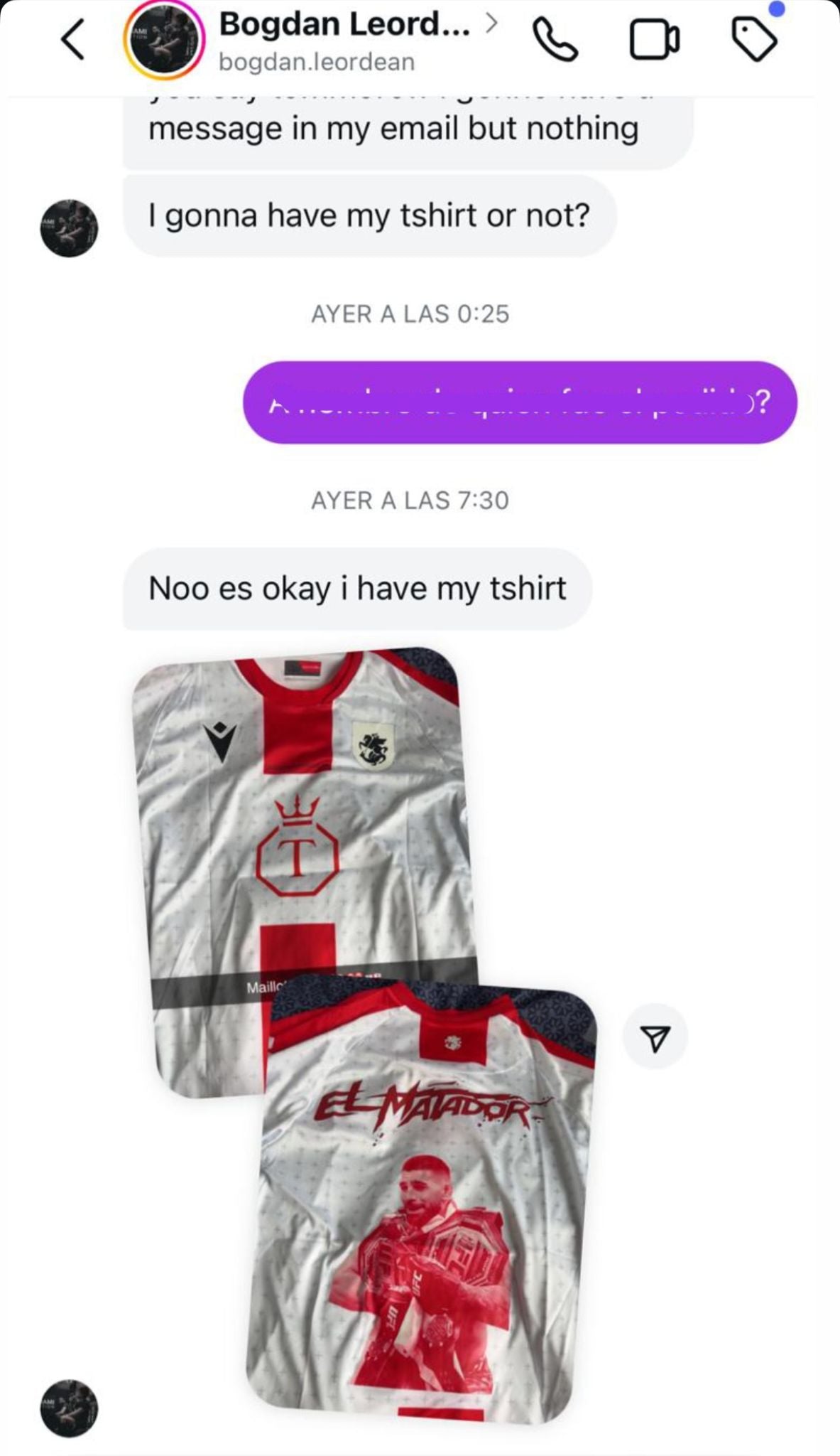I had a problem with the address and they solved it right away, finally the shirt arrived earlier than expected.